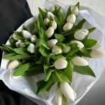 Лента атласная – 2 шт.Упаковка дизайнерская – 3 шт.Тюльпан белый – 29 шт.