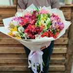 Роскошный букет разноцветной альстромерии с оформлением порадует получателя своими красками. Подари любимой красивый букет ярких цветов