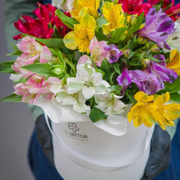 Букет из 9 альстромерий в шляпной коробке
