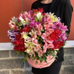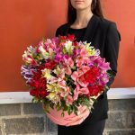 Альстромерия – 25 шт.Оазис флористический – 1 шт.шляпная коробка l – 1 шт.