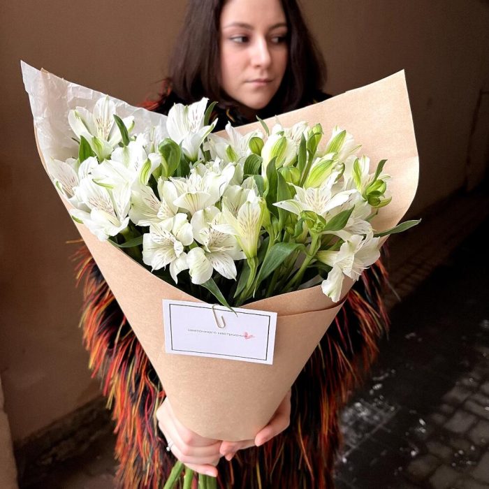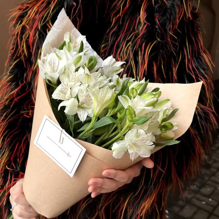 Альстромерия белая – 7 шт.Дизайнерская упаковка – 1 шт.