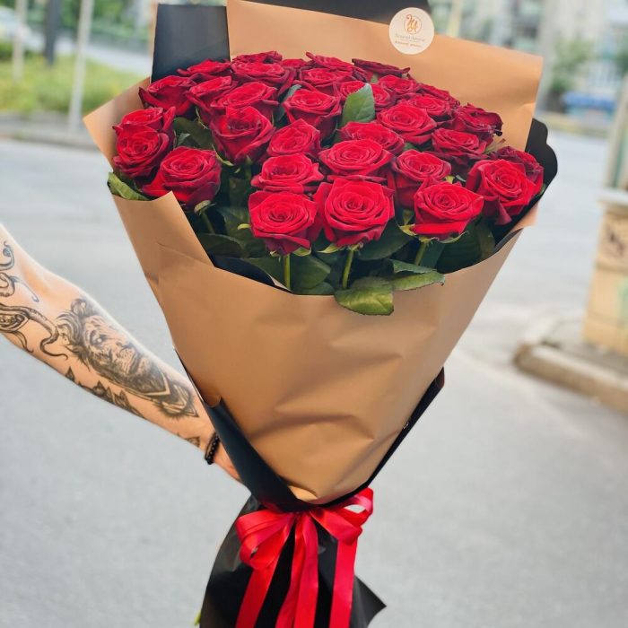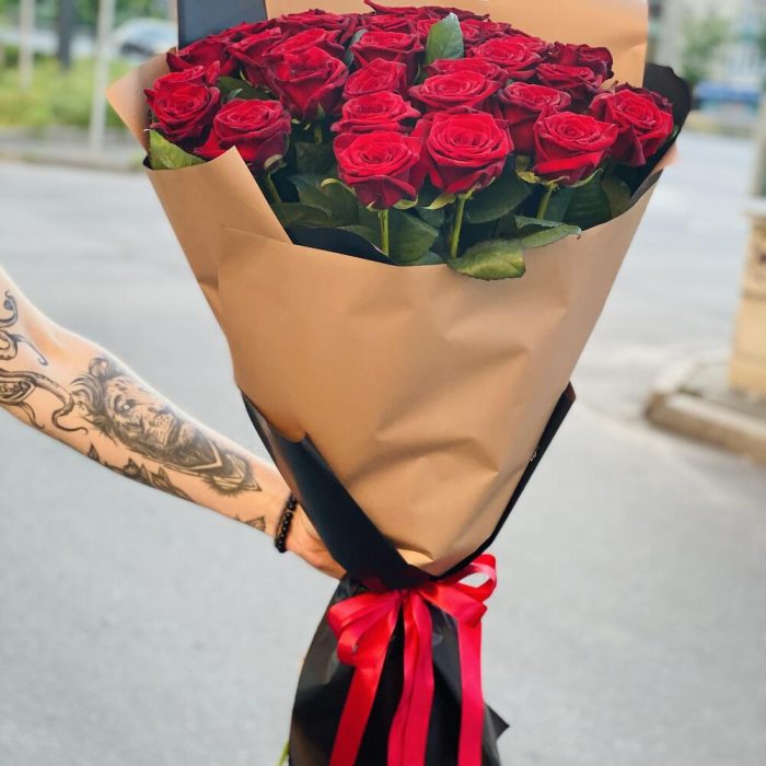 оформлення букета – 1 шт. троянда червона висока 80 см – 51 шт.