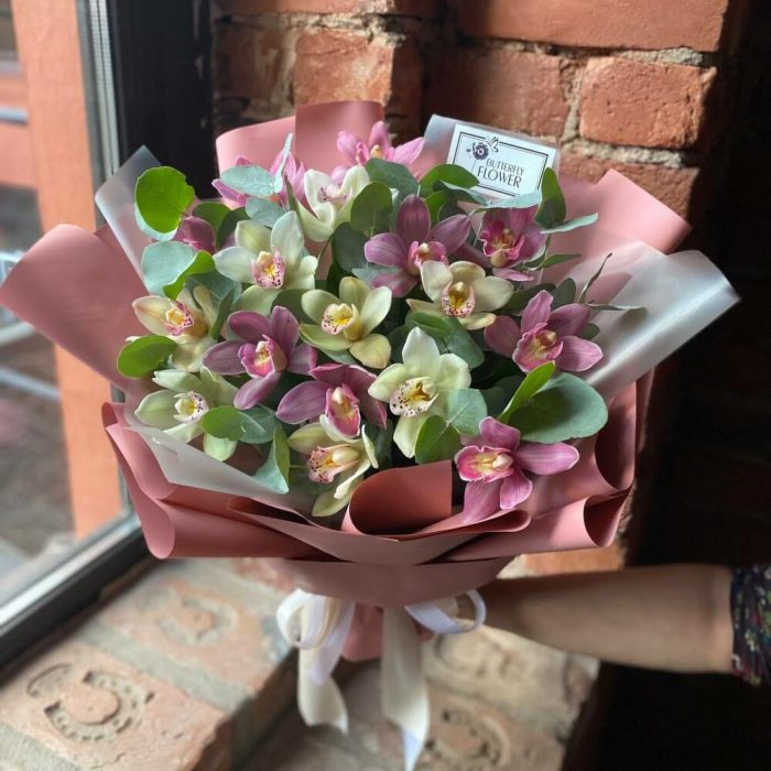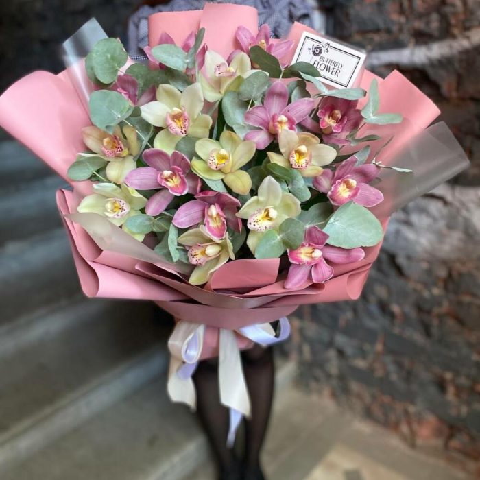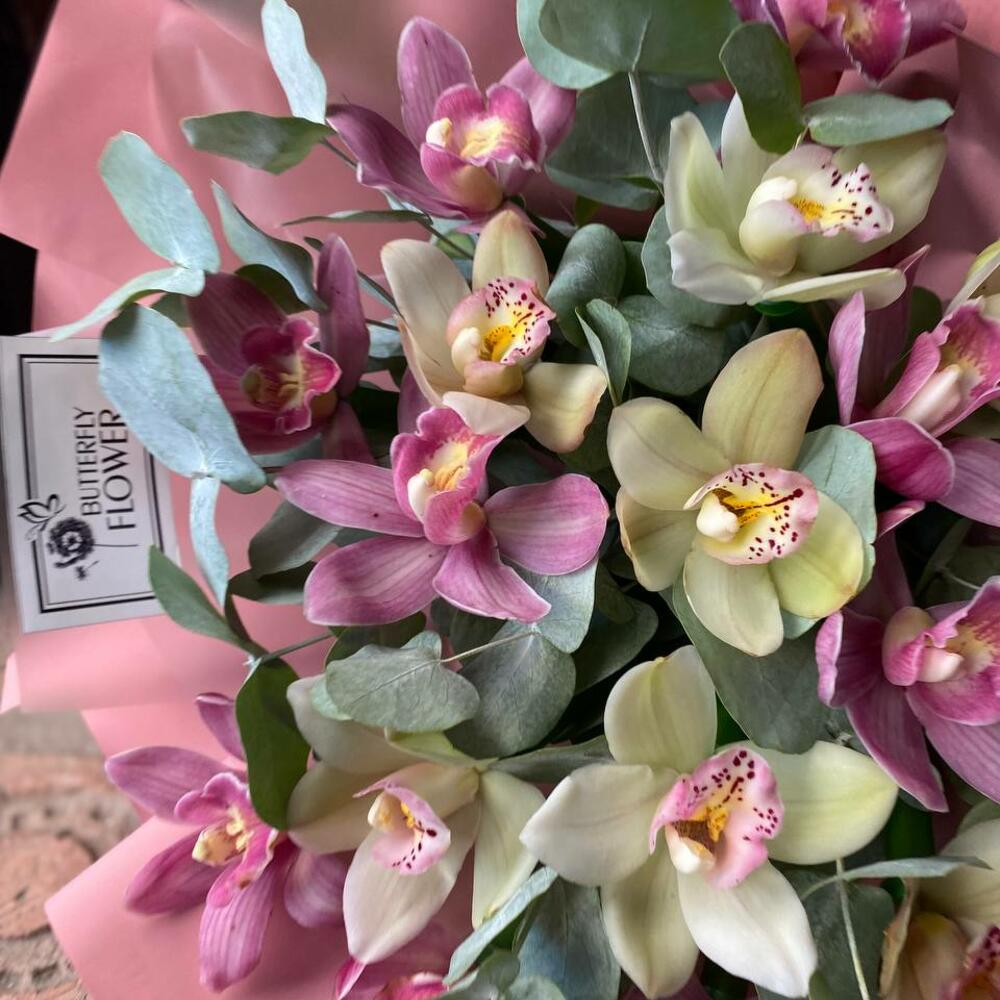 ЦИМБИДИУМ – 17 шт.Эвкалипт – 4 шт.Упаковка – 4 шт.Лента – 2 шт.
