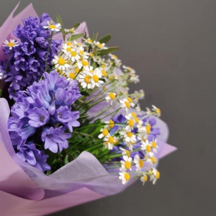 Букет комплимент с гиацинтами и ромашками “Лучик счастья”