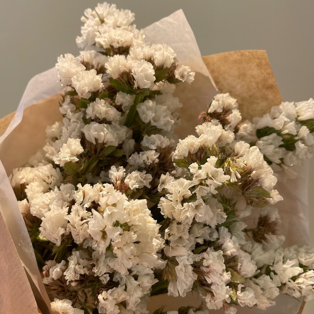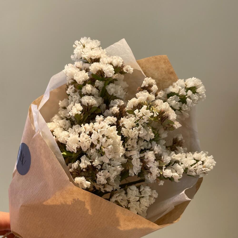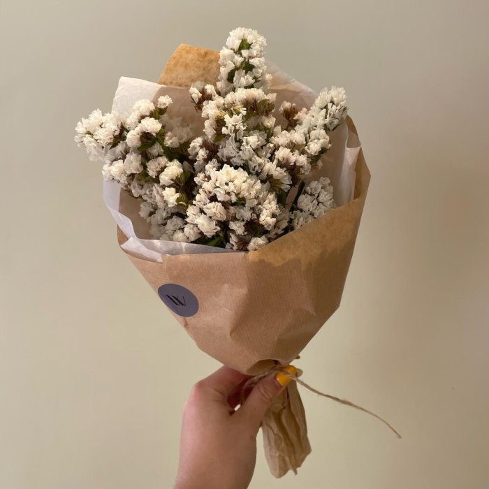 «Лавандовое созвездие» Букет из розы, гвоздики, статица и хлопка