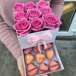 Мини шкатулка с кустовыми розами (9 клубничек в шоколаде)