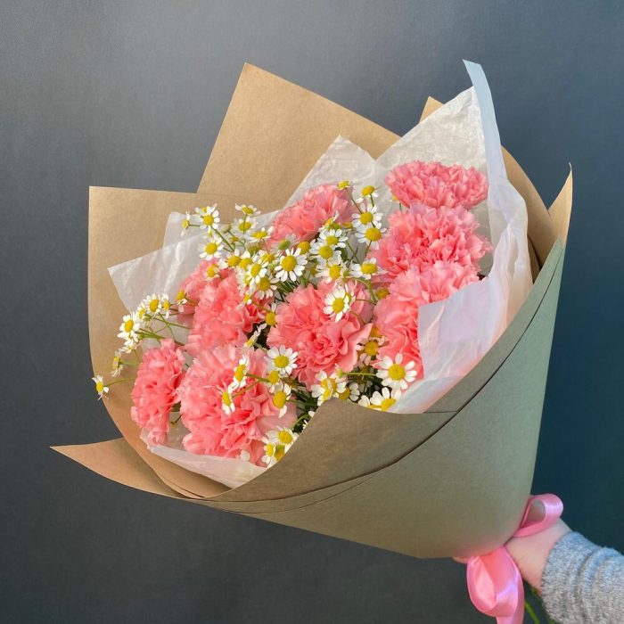 Букет Гвоздики и Ромашки в крафте