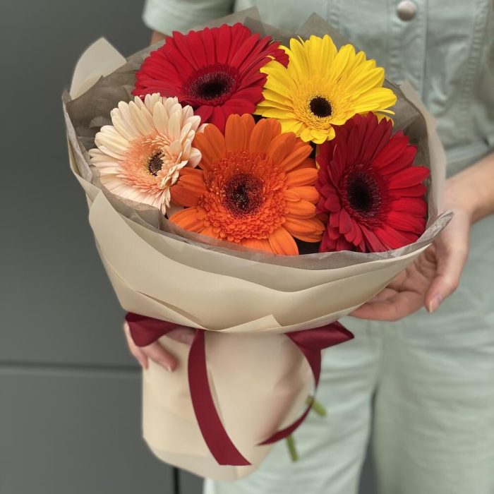 Писташ – 1 шт. Оформление – 1 шт. герберы – 5 шт.