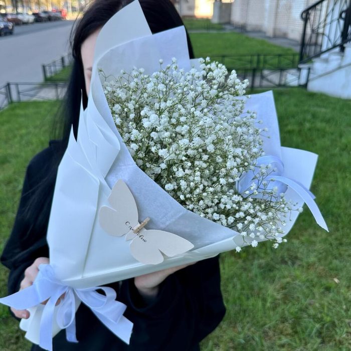 Белый букет из гипсофилы «облако»