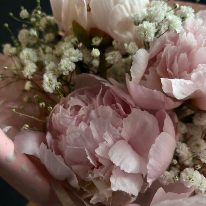 Букет из пионов и гипсофилы