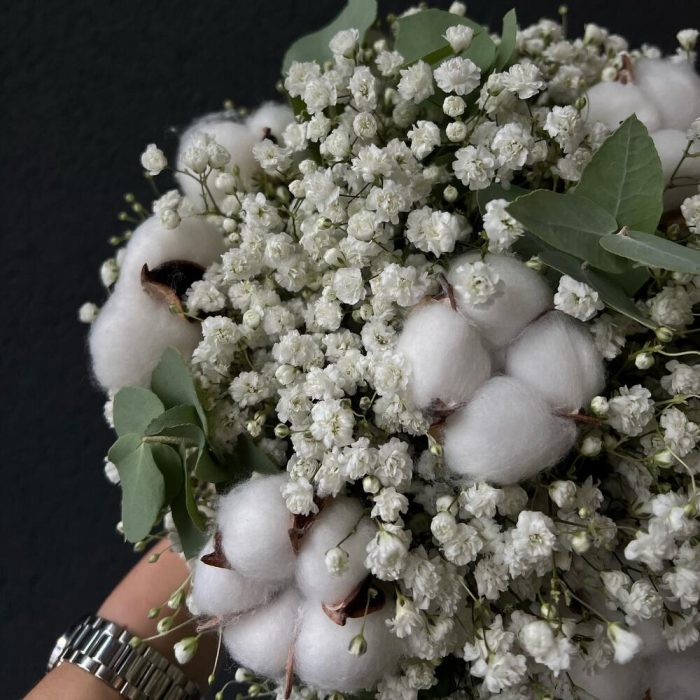 Букет невесты из гипсофил и хлопка