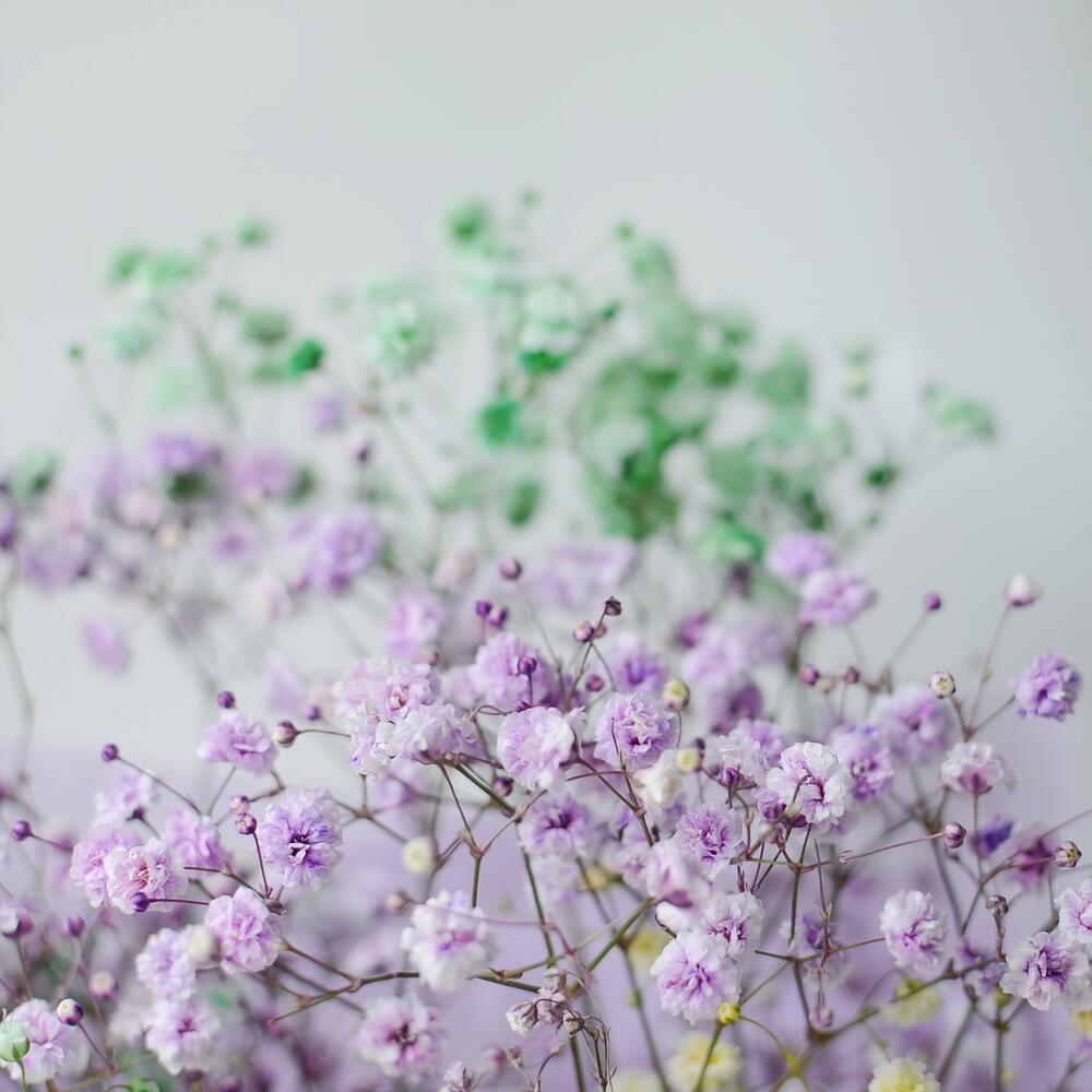“Сиреневый туман” – композиция из гипсофилы в шляпной коробке