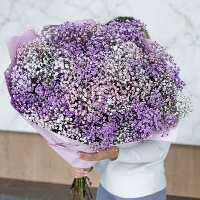 Шикарный букет из воздушной гипсофилы. Получатель точно не останется равнодушным при виде такого гиганта .Инструкция по уходу за цветами прикреплена к каждому заказу.Цветы гипсофилы отличаются стойкостью и даже при высыхании не теряют, декоративности и цвета. Что позволяет, долгое время украшать интерьер в качестве сухоцветов.Подпишем открытку с вашими пожеланиями бесплатно