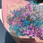 Лента атласная – 1 шт. Упаковка дизайнерская – 8 шт. гипсофила радужная голландская – 10 шт.
