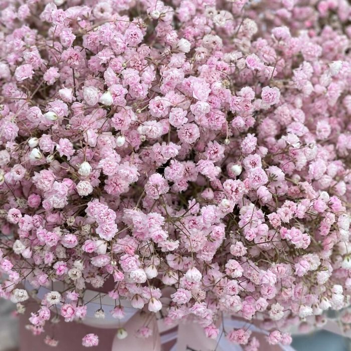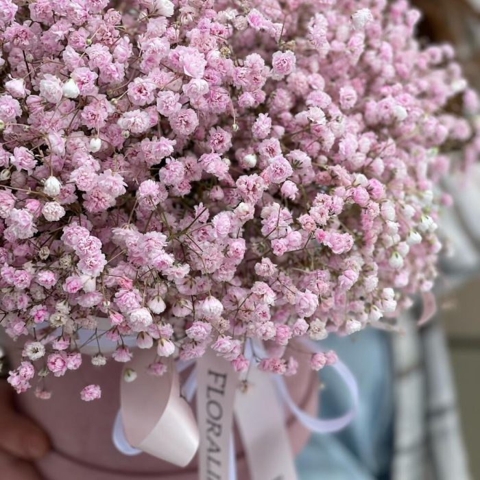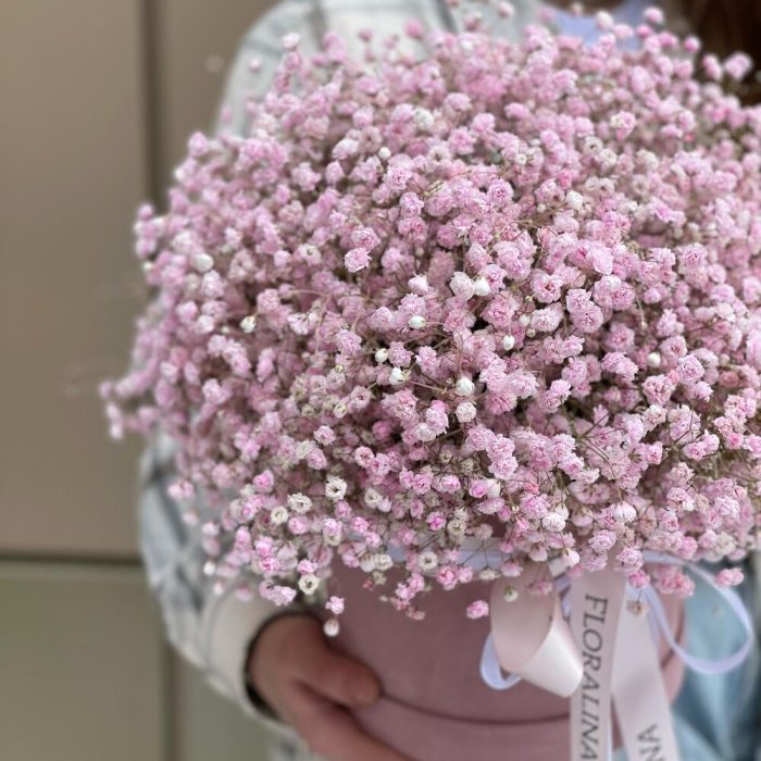Гипсофила – 21 шт.Коробка бархатная – 1 шт.Оазис флористический – 1 шт.лента фирменная – 2 шт.