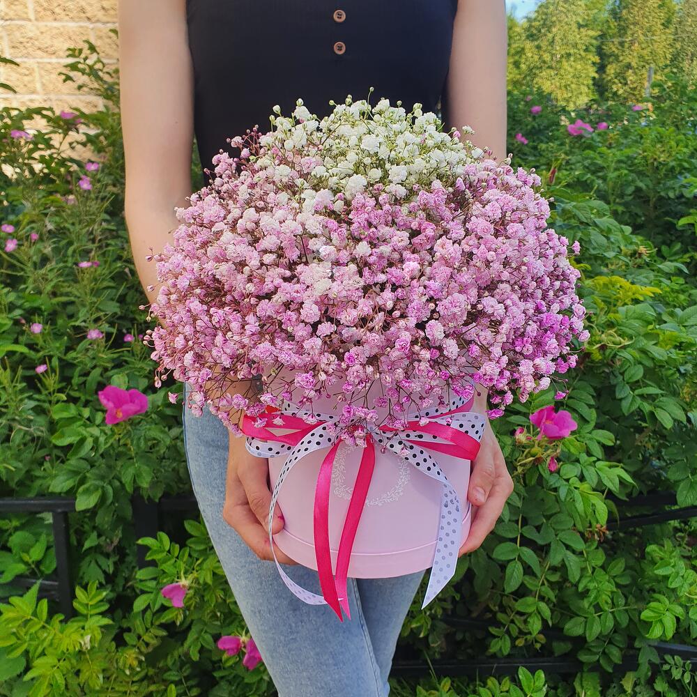 Коробка может отличаться от представленной на фото.Нежные веточки гипсофилы собраны в единую композицию для создания уникального внешнего вида. Благодаря специальной флористической губке растение питается влагой на протяжении всего срока жизни – нужно всего лишь раз в несколько … Показать ещёдней доливать небольшое количество воды в губку. Идеально подходит, как для подарка, так и для оформления интерьера – после высыхания цветы практически не теряют внешний вид – у некоторых наших покупателей композиции стоят уже пол года.
