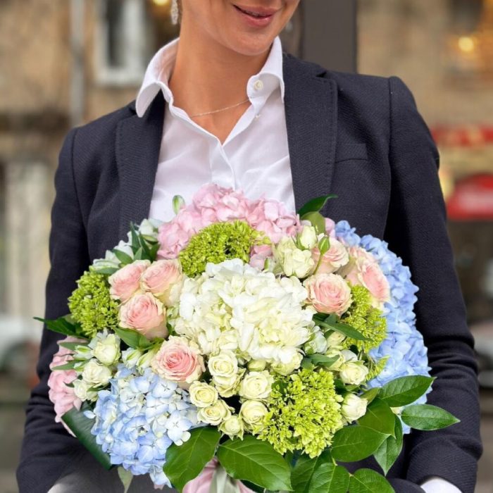 Утренний свет букет с гортензией и пионами
