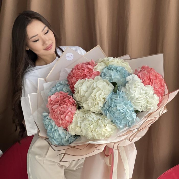 Гортензии, Кустовые розы, Пионовидные розы, Розы