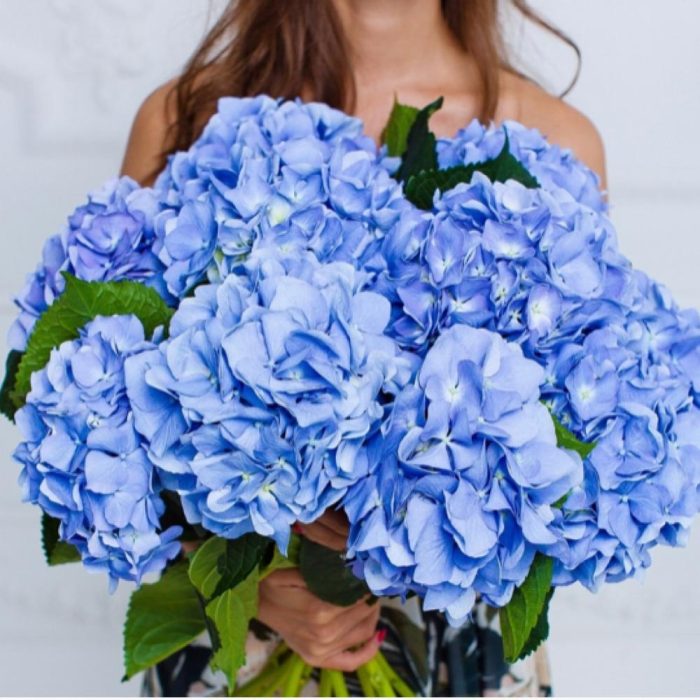 Гортензия – 9 шт.дизайнерская упаковка и атласная лента – 1 шт.
