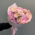 Букет из гортензии и кустовой пионовидной розы Juliet