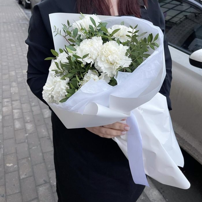 Белые диантусы в дизайнерском оформлении