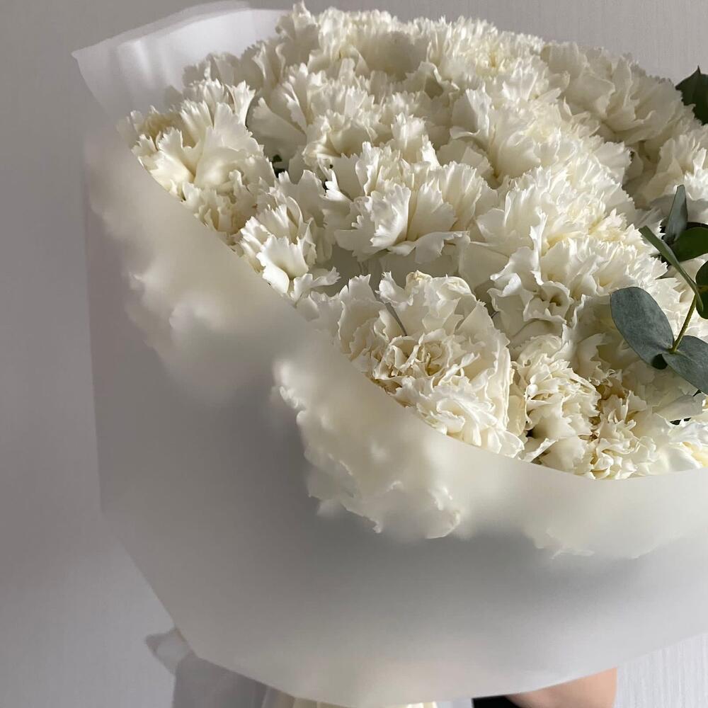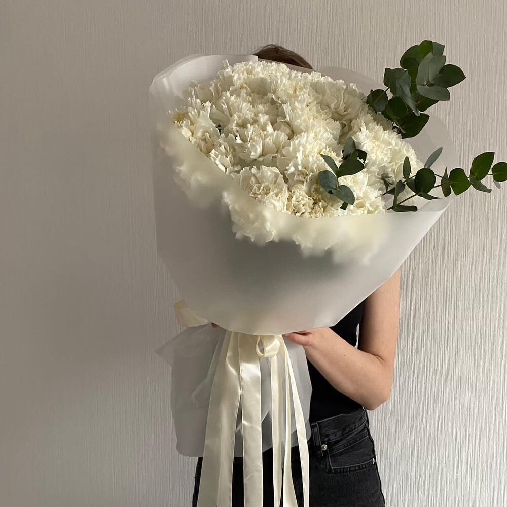 Букет из белых гвоздик и эвкалипт