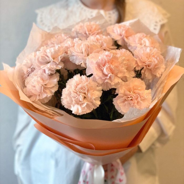 Лента – 1 шт.Тишью – 1 шт.Пленка – 1 шт.Гвоздика одноголовая – 15 шт.