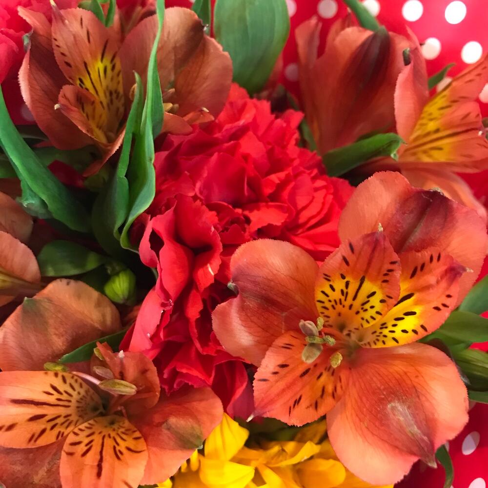 Категории: Альстромерии, Гвоздики, Подсолнухи