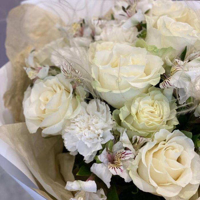 роза одноголовая mondial – 11 шт.Альстромерия – 5 шт.Диантус – 5 шт.Подарочная упаковка – 1 шт.средство для продления жизни срезанных цветов – 1 шт.