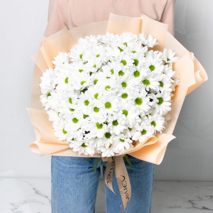 Букет “Ромашковое поле” из свежих хризантем 15 шт. (55 см)