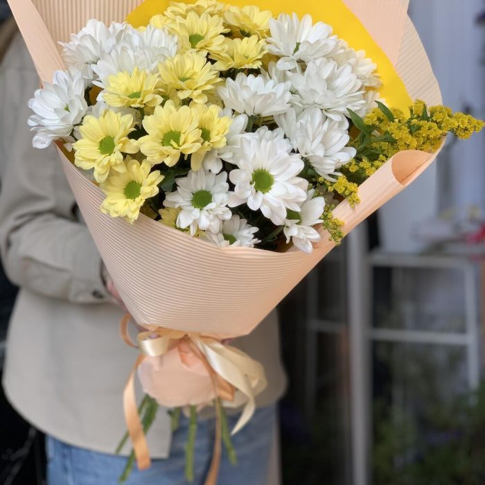 Хризантема кустовая – 5 шт. Мимоза – 1 шт.