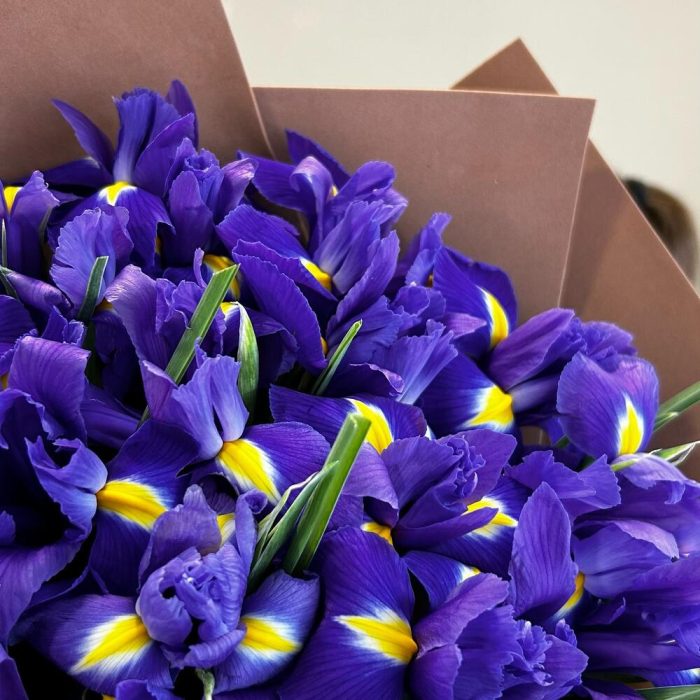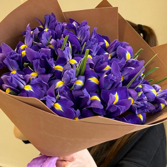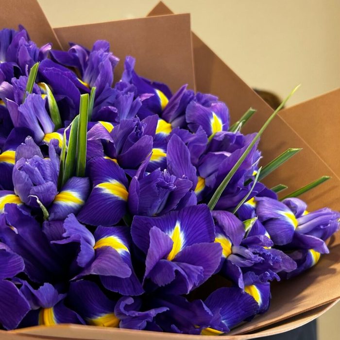 Букет из 21 фиолетового ириса в упаковке
