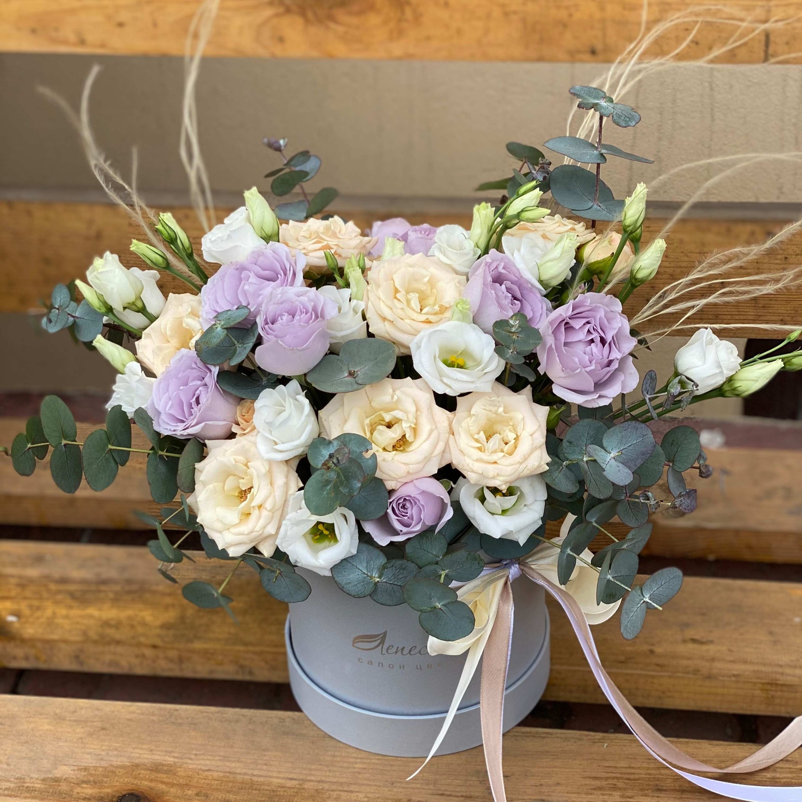 Букет из кустовых роз, маттиол, эустомы и гвоздики