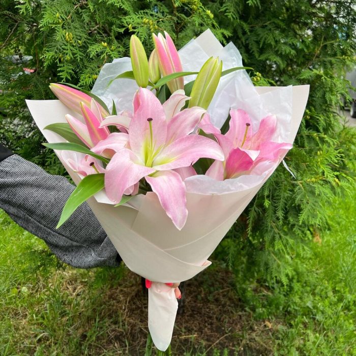 Тишью – 2 шт.Лилия розовая – 3 шт.структурированный фаомиран – 2 шт.