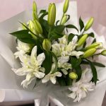 Лилия белая – 7 шт.декоративная упаковка – 1 шт.Атласная лента – 1 шт.