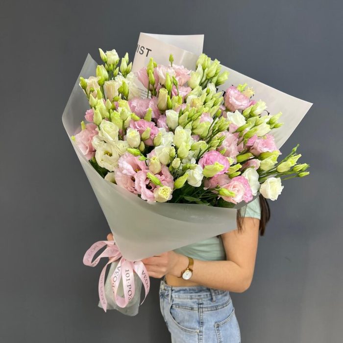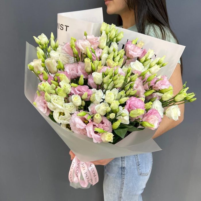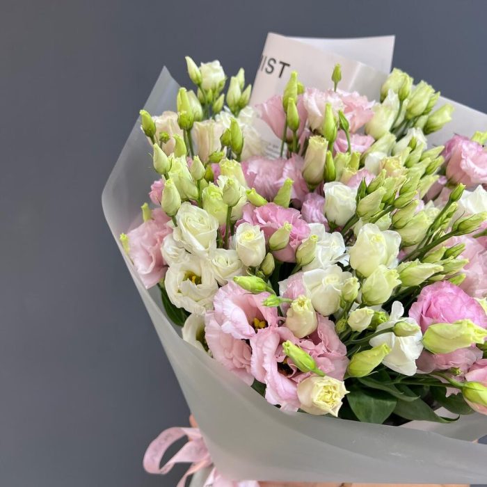 15 белых и нежно-розовых эустом