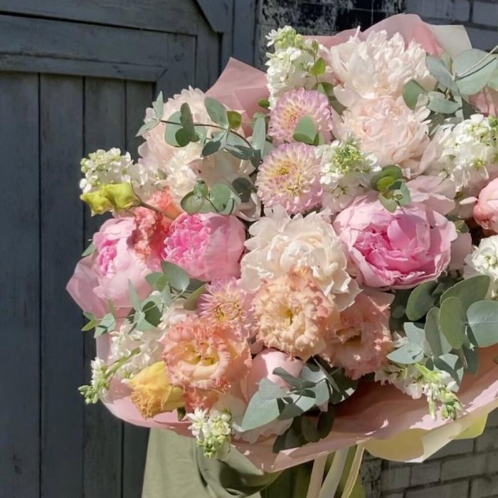 Букет с пионами и душистой маттиолой