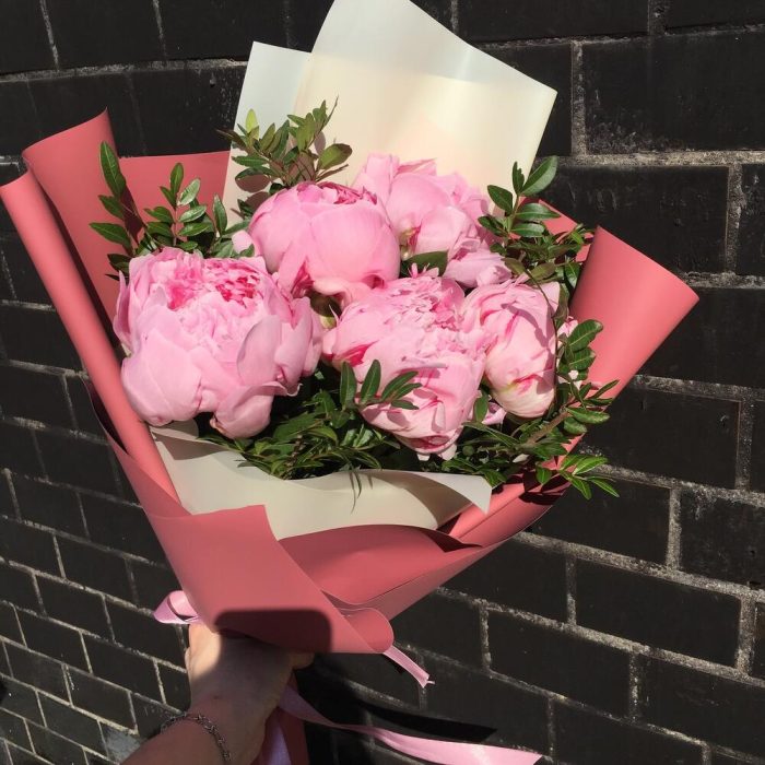 Пион – 5 шт.Писташ – 3 шт.Лента атласная – 1 шт.Упаковка дизайнерская – 3 шт.
