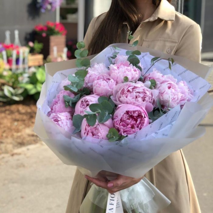 sara bernar пионы – 13 шт.Подарочная упаковка – 1 шт.Эвкалипт – 1 шт.Средство для продления жизни цветов – 1 шт.