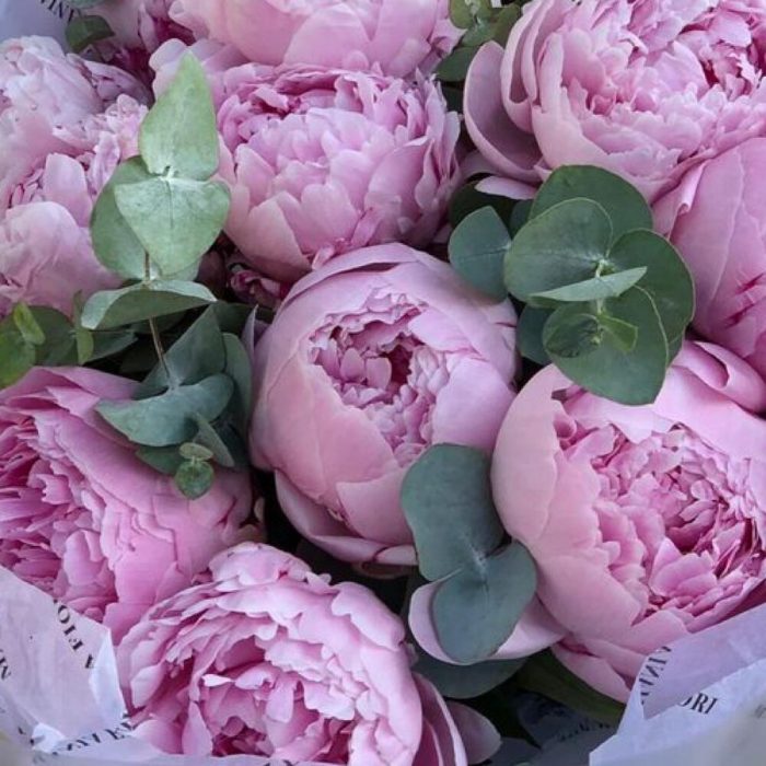 Нежный букет с розовыми пионами и эвкалиптом