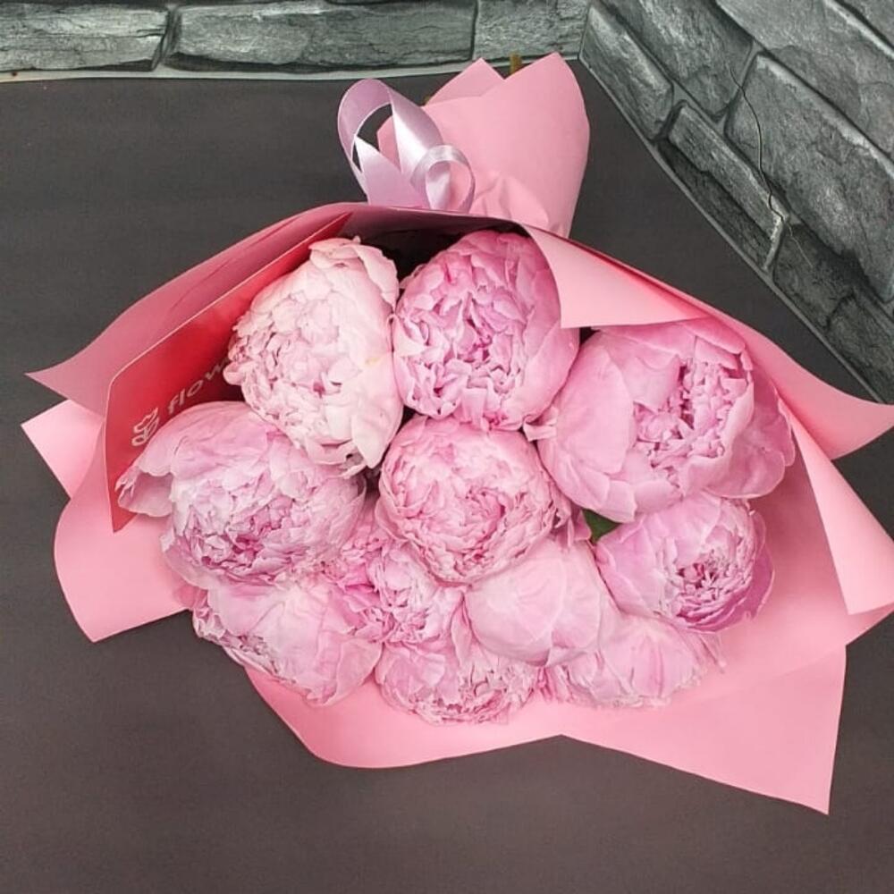 Пион Сара Бернар – 11 шт.Упаковка дизайнерская – 1 шт.Лента атласная – 1 шт.