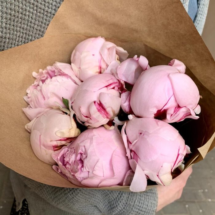 Крафтовая упаковка – 1 шт.Пион розовый – 7 шт.