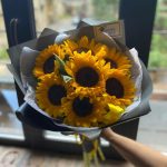 Букет из 7 подсолнухов в стильной упаковке “Сфера”