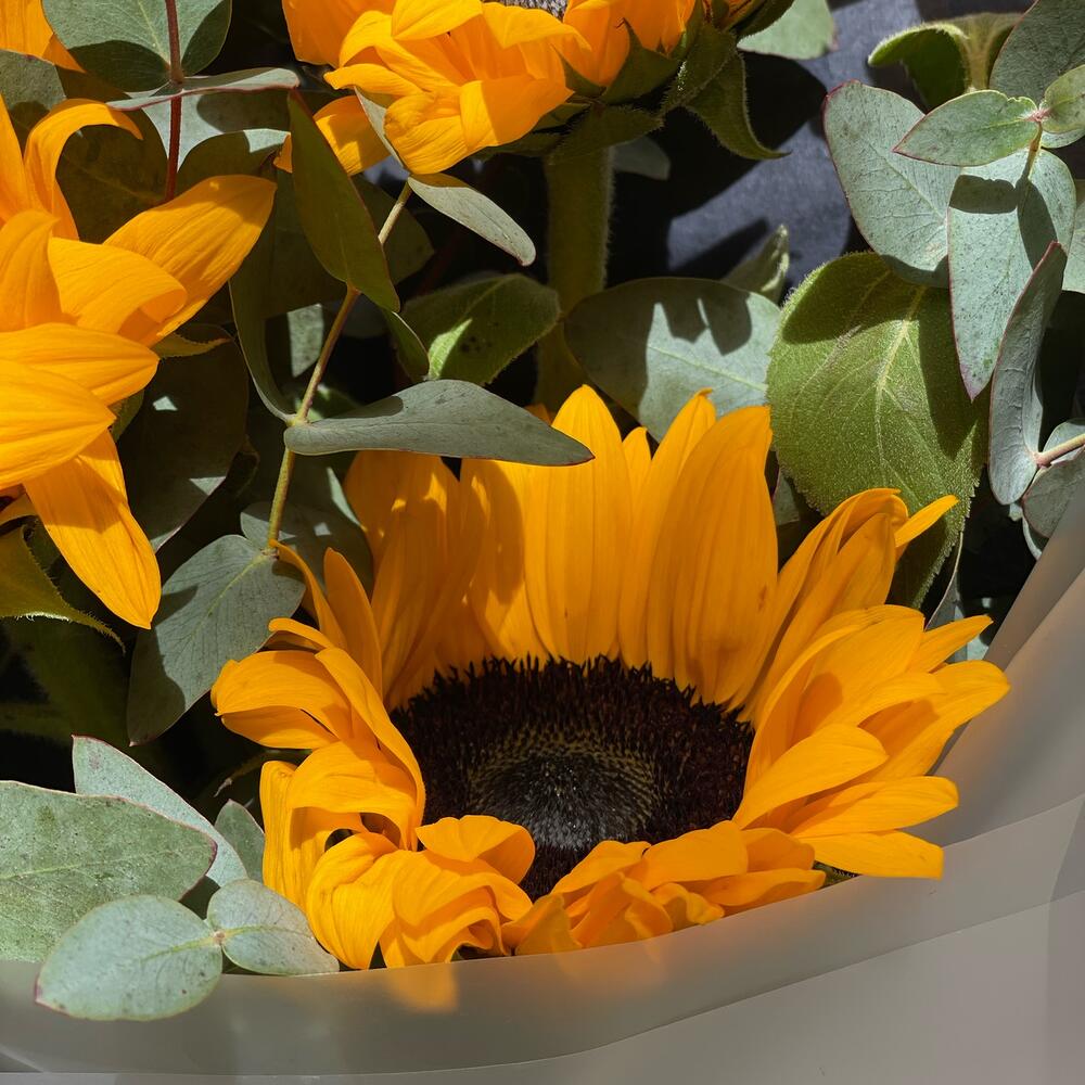 Букет из подсолнухов и эвкалипта "Онис"