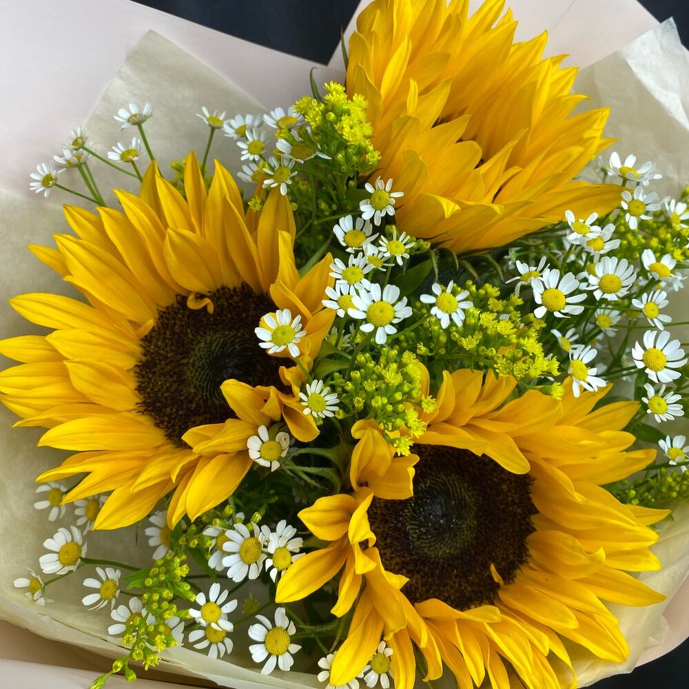 Букет подсолнухов с ромашками
