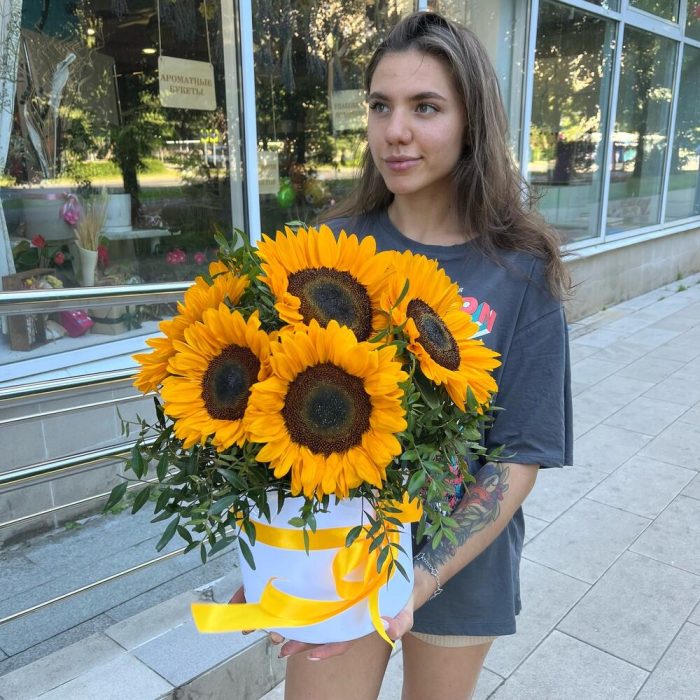 Подсолнухи в коробке «Подарю тебе Солнце»