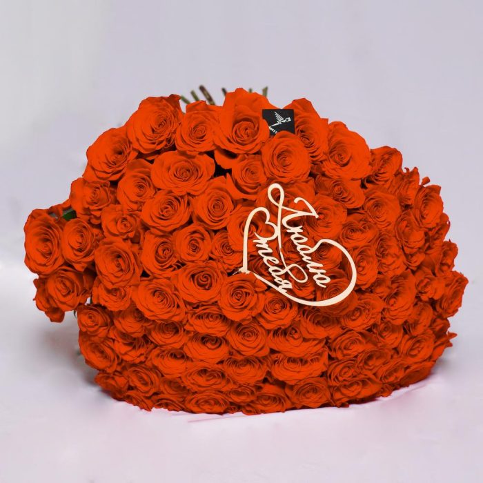 роза эквадор 50 см nina – 101 шт.Пленка прозрачная – 1 шт.Лента атласная – 1 шт.