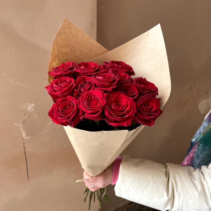 Крафт упаковка – 1 шт.роза россия красная – 13 шт.