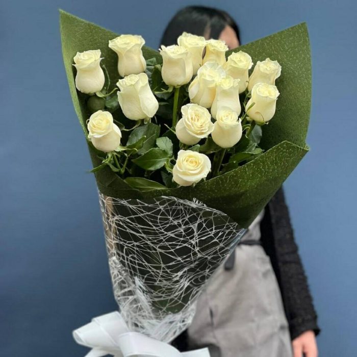 Лента – 1 шт. Упаковка дизайнерская – 6 шт. Роза Мондиаль – 15 шт.