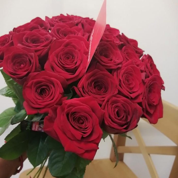 Роза эксплорер 70 см – 25 шт.Лента атласная – 1 шт.Пленка прозрачная – 1 шт.